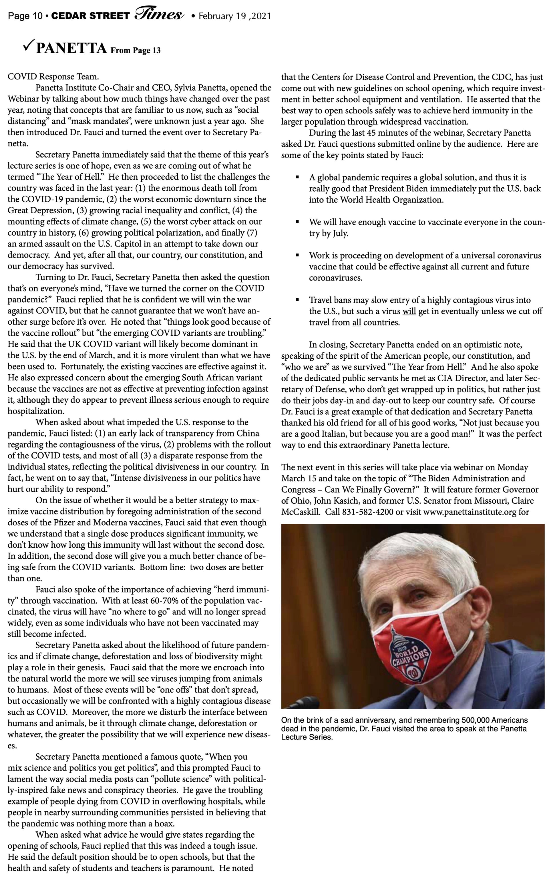 Cedar Street Times Articles (2021)