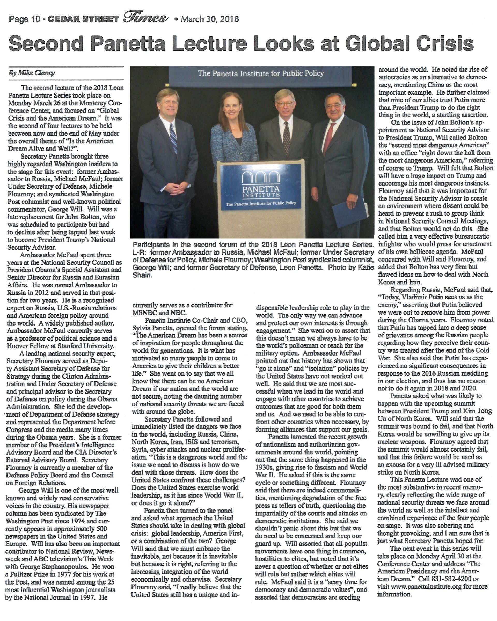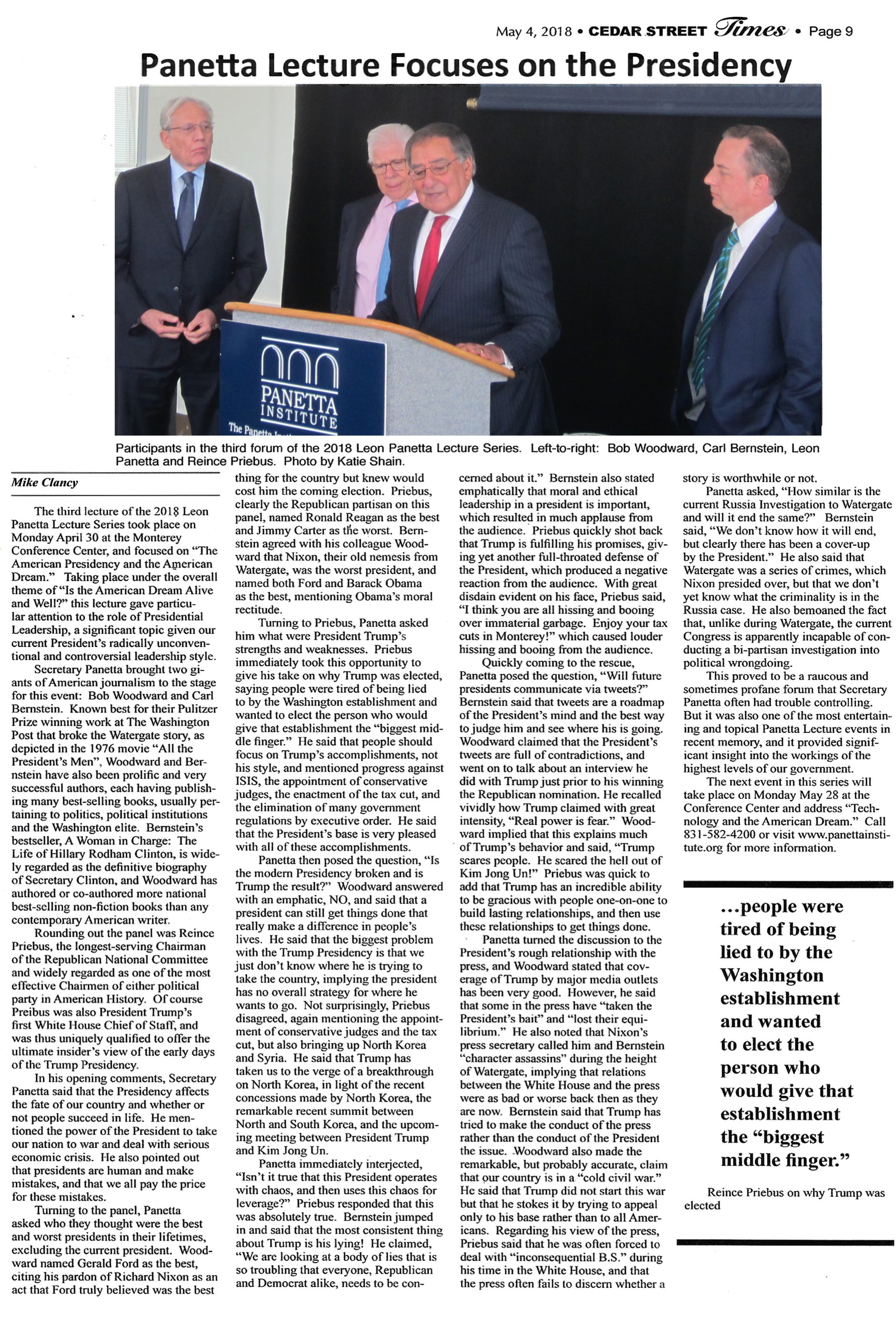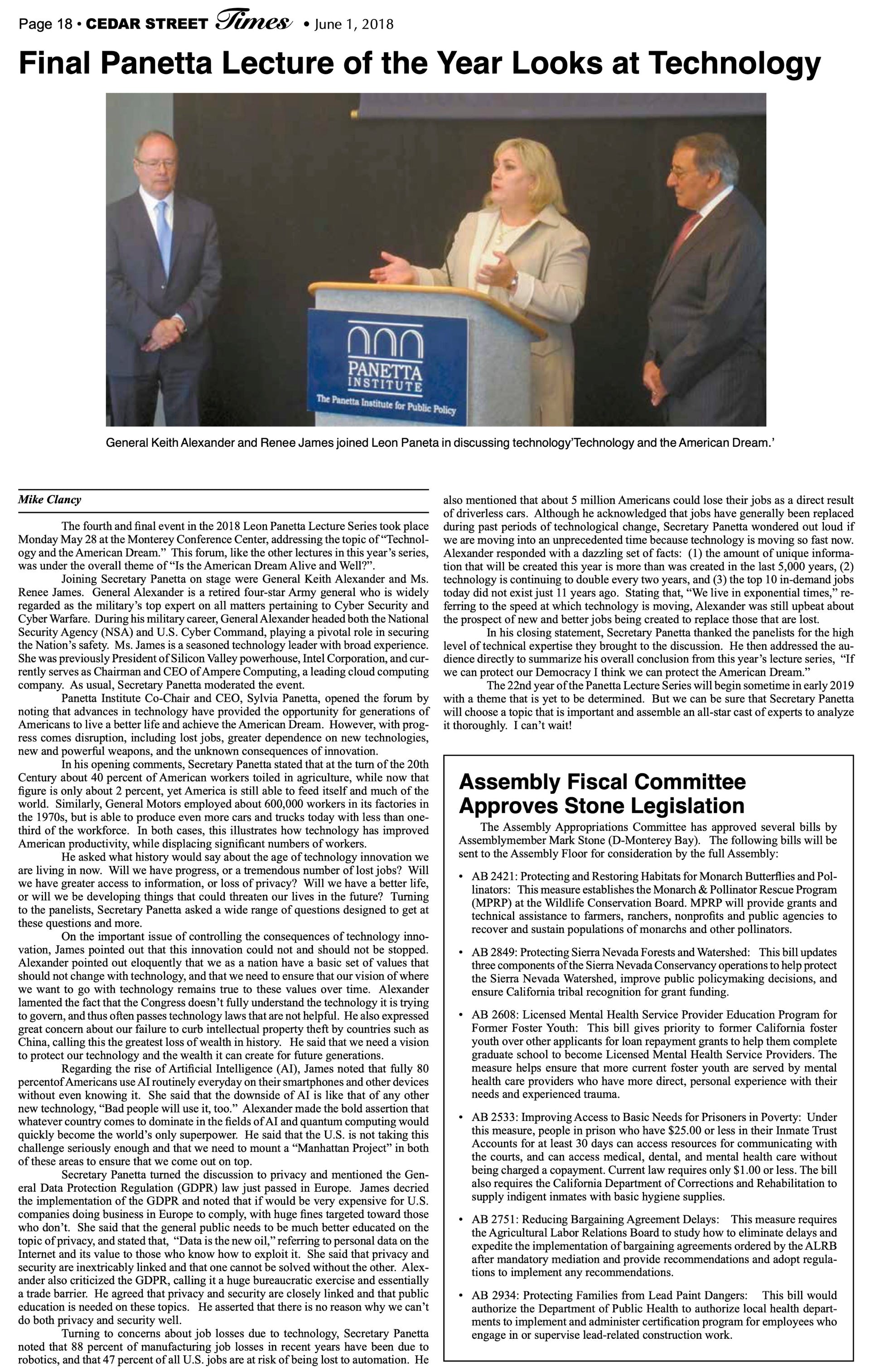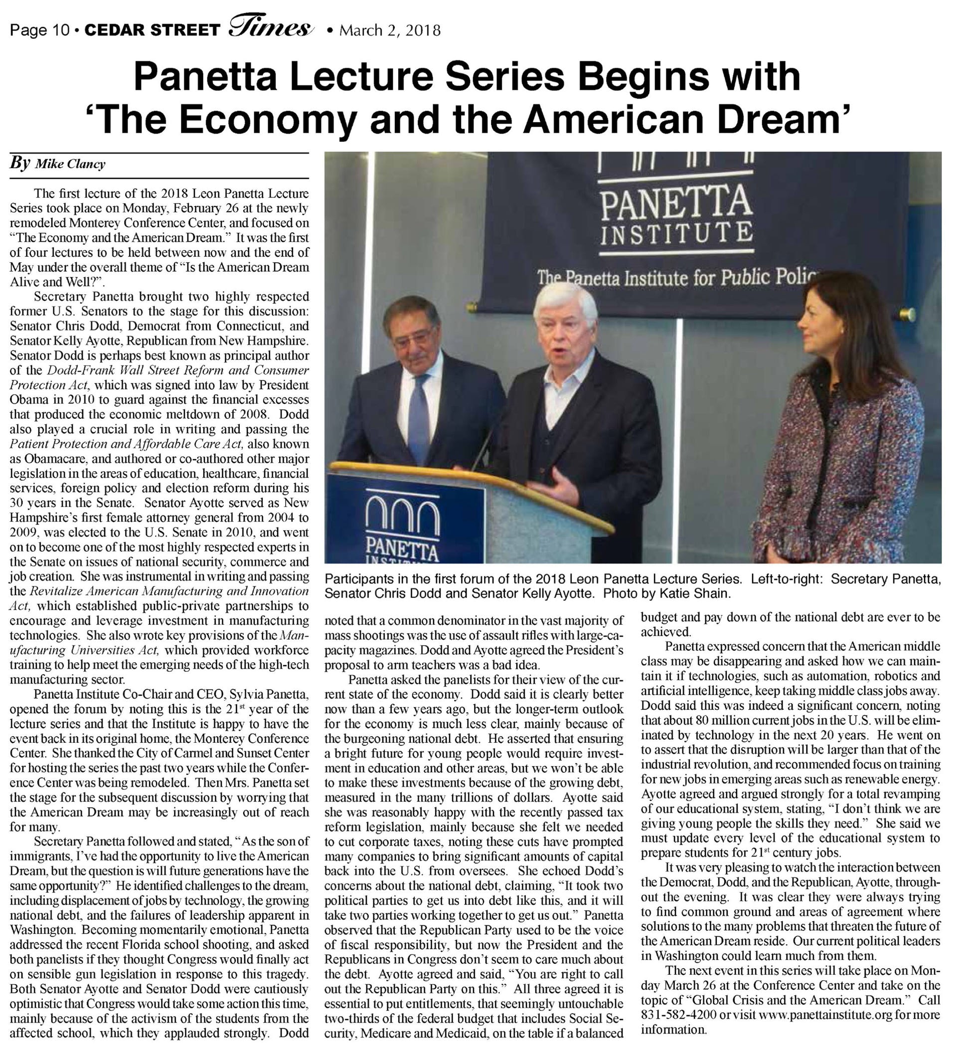 Cedar Street Times Articles (2018)